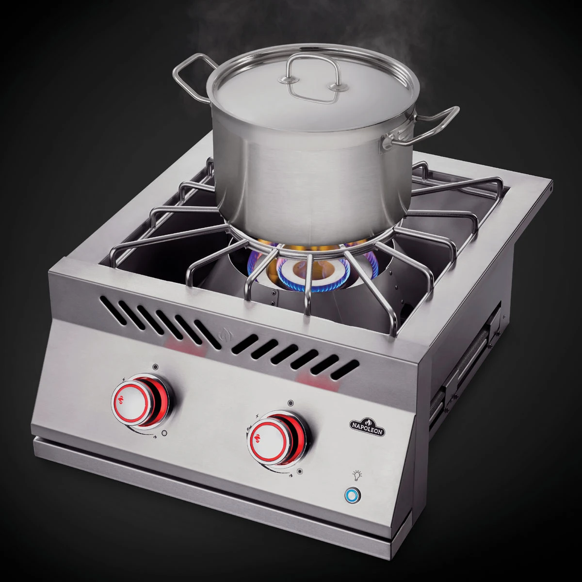 - Der Power-Wokbrenner darf nur in ausreichend hitzefestem und nicht brennbarem Material verbaut werden. Mit einer maßgenau passenden Napoleon Einbau-Einfassung ist dagegen auch der Einbau in hitzeempfindlichen Baustoffen möglich. Diese ist optional erhältlich.