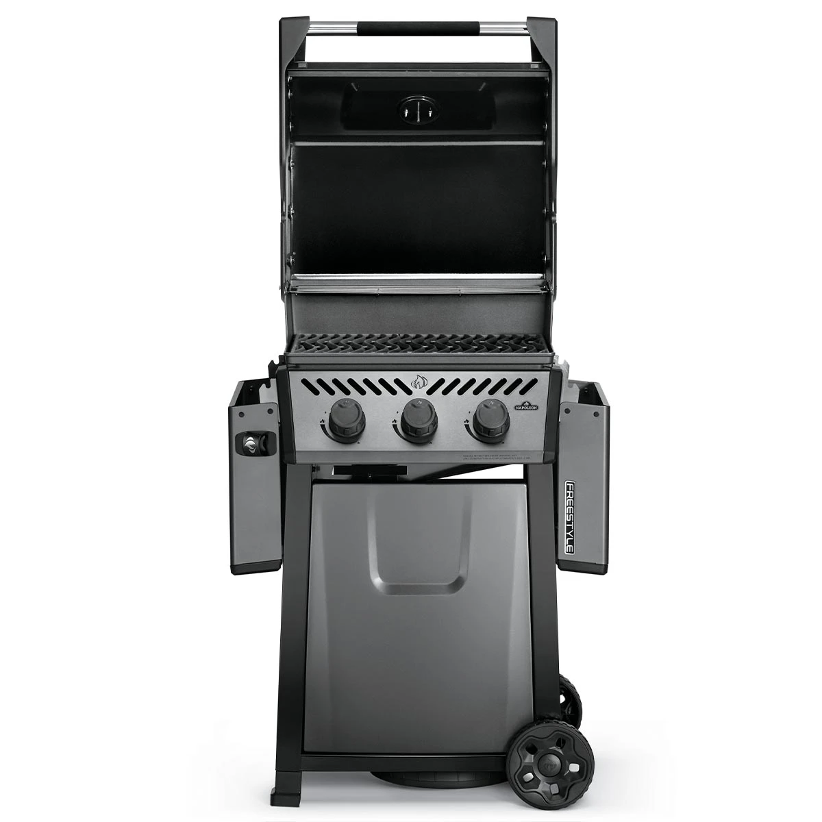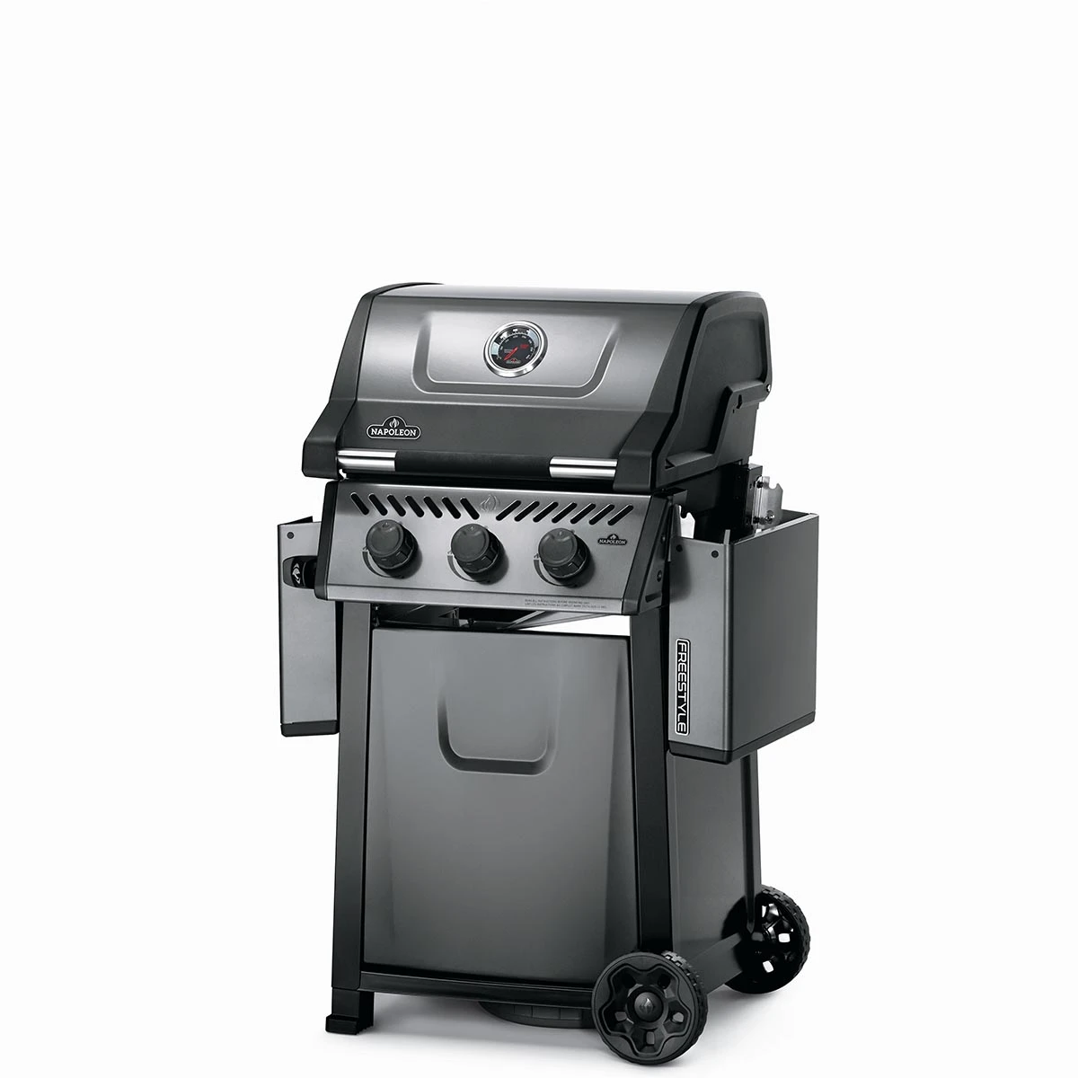 Mit den abklappbaren Seitentische ist der Napoleon Freestyle extrem kompakt und lässt sich auch bei kleinstem Platzangebot unterbringen.