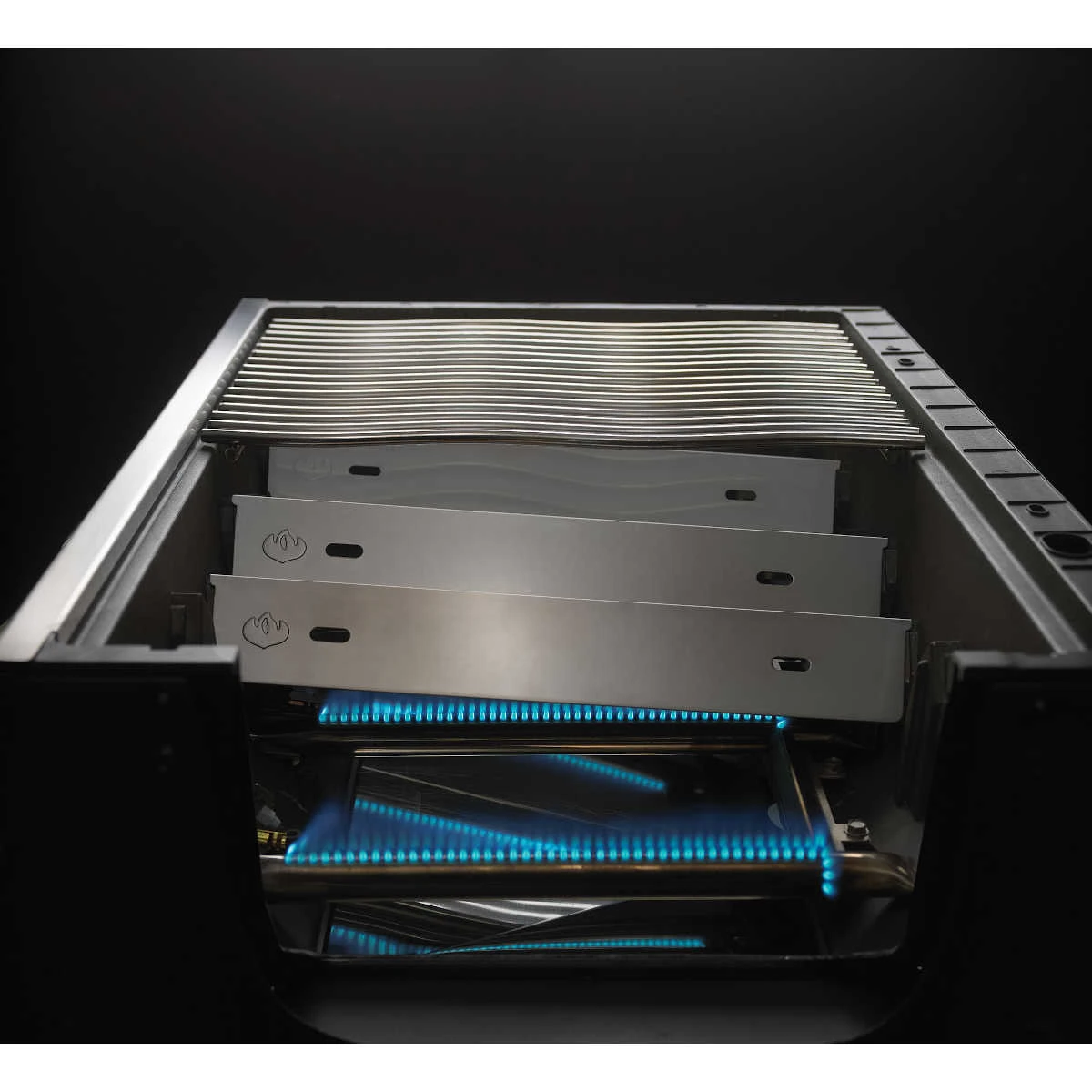 Eine extra Oberfläche bilden die Edelstahl-Flammenschutzeinsätze und werden so zu Aromaschienen, die dem Grillgut eine besonders aromatische Grillnote verleihen. Dank des geradlinigen und durchdachten Designs sind diese Aromaschienen besonders einfach zu reinigen.