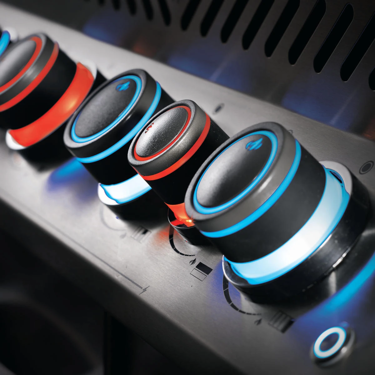Eine angenehme Haptik besitzen die ergonomischen SAFETY GLOW™ Drehregler und sorgen für eine präzise Temperatursteuerung, diese verfügen zudem eine blaue Hintergrund Beleuchtung, welche bei strömendem Gas seine Farbe auf Rot ändert. Für eine gleichmäßigere Hitzeverteilung sorgt das Napoleon-typische Wellen-Design der WAVE Grillroste und halten auch kleineres Grillgut sicher am Rost.