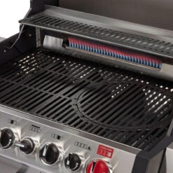 Die qualitativ hochklassigen Brenner aus Edelstahl haben eine Gesamtleistung von 14 kW und sind im robustem mit eingebaut. In dem Brennergehäuse wird die Hitze besonders gut von Umwelteinwirkungen wie Kälte isoliert. Das mit extra flachen Flammenverteilern sorgt für eine gleichmäßige Hitzeverteilung unter dem Grillrost und in der Garkammer. Die Flammenverteiler funktionieren ebenso als Schutz für die Brenner, damit diese durch hinunter tropfenden Saft bzw. Fett nicht verstopfen.